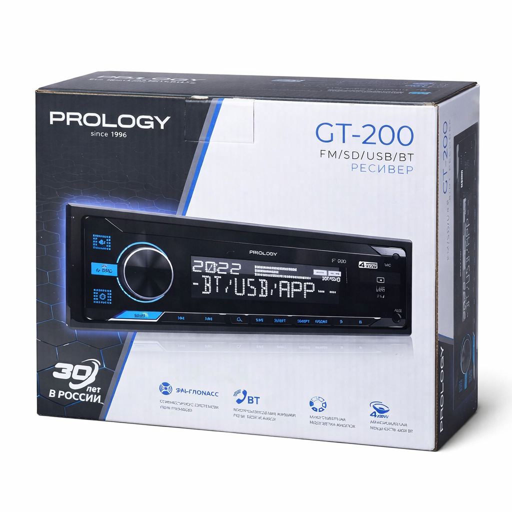 Prology GT-200 — автомобильная магнитола формата 1DIN с поддержкой Bluetooth, USB-накопителей и карт памяти microSD. Устройство оснащено встроенным усилителем 4×55 Вт, FM-тюнером с памятью радиостанций и эквалайзером для базовой настройки звука. Благодаря компактной монтажной глубине и стандартному размеру модель подходит для установки в большинство автомобилей и позволяет воспроизводить музыку со смартфона и внешних носителей.