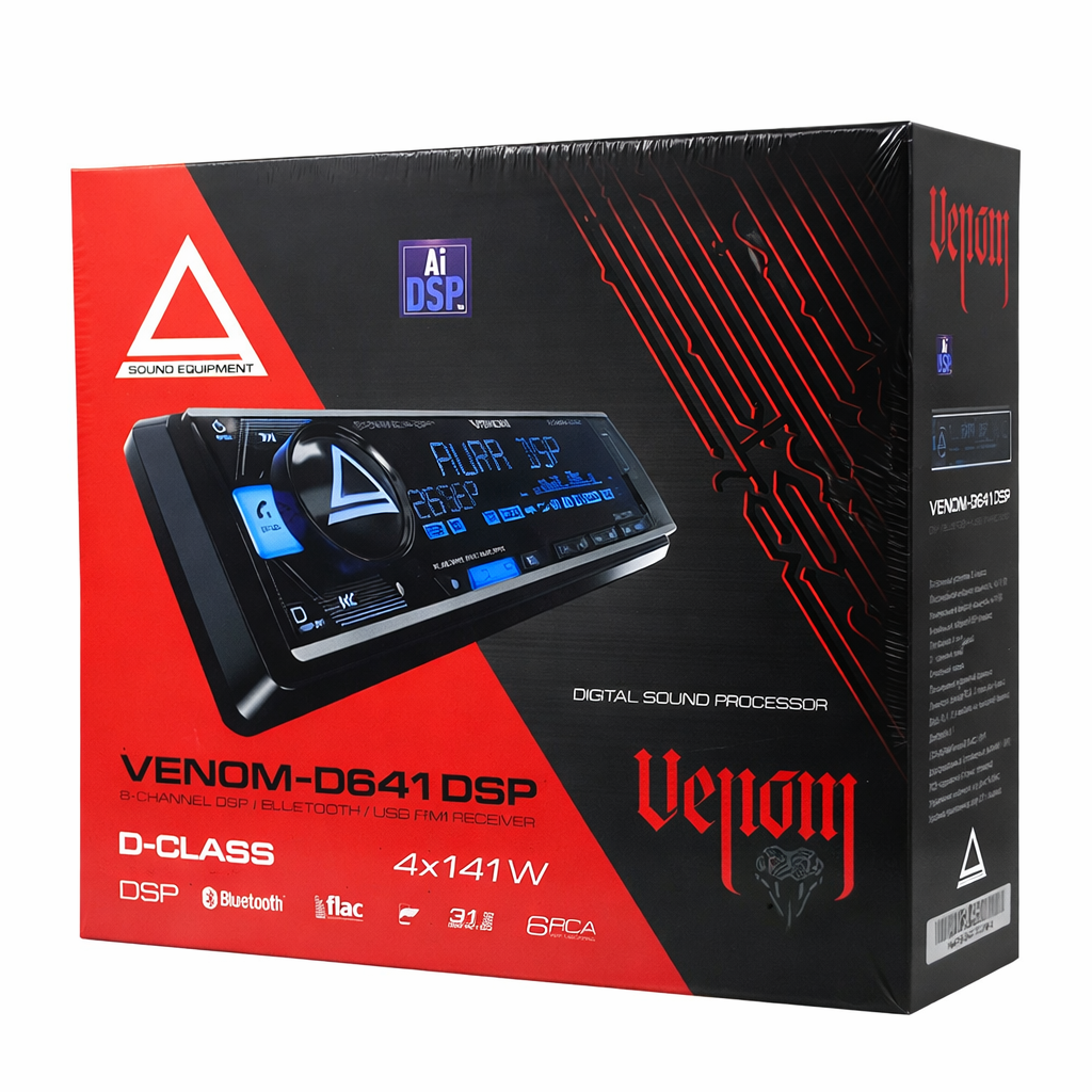 AurA Venom-D641 DSP — автомобильный процессорный ресивер формата 1DIN со встроенным усилителем класса D и цифровым аудиопроцессором. Устройство поддерживает воспроизведение музыки через USB, Bluetooth и FM-радио, а также обеспечивает точную настройку звука благодаря 31-полосному эквалайзеру и кроссоверам. Подходит для модернизации автомобильной аудиосистемы и позволяет получить более чистый и управляемый звук без установки отдельного DSP-процессора.